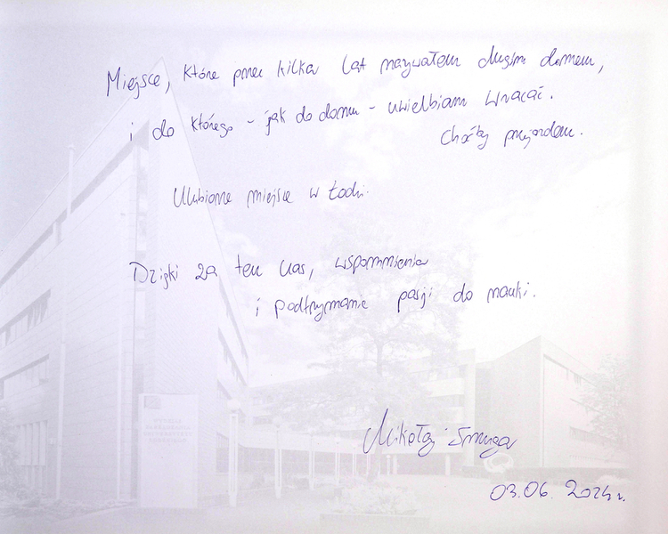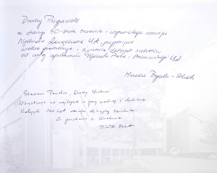 Szanowni Państwo, Wasze życzenia i wspomnienia są dla nas niezwykle cenne, dlatego dziękujemy za podzielenie się nimi ze społecznością naszego Wydziału. Poniższa wirtualna księga wpisów prezentuje wpisy z jubileuszy 10-, 15-, 20- oraz 30-lecia Wydziału Zarządzania Uniwersytetu Łódzkiego. Wszystkim osobom, które miały okazję złożyć swoje życzenia z okazji dotychczasowych jubileuszy obchodzonych przez Wydział, chcielibyśmy serdecznie podziękować.