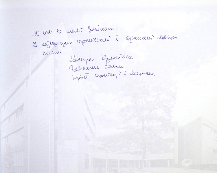 Rocznica ta daje mi również okazję, aby podziękować za miłą, też trzydziestoletnią, bardzo owocną współpracę z Wydziałem Zarządzania Uniwersytetu Gdańskiego, a osobiście, za pełne życzliwości kontakty, zaproszenia i cenne spotkania, które umożliwiały mi nie tylko ubogacenie naukowe, dostarczały inspiracji, ale przede wszystkim pozwalały na nawiązanie relacji koleżeńskich, z których jestem dumna. Chciałabym bardzo podziękować za dotychczasową współpracę i wyrazić nadzieję, że będzie ona równie trwała i nie mniej intensywna w przyszłości.