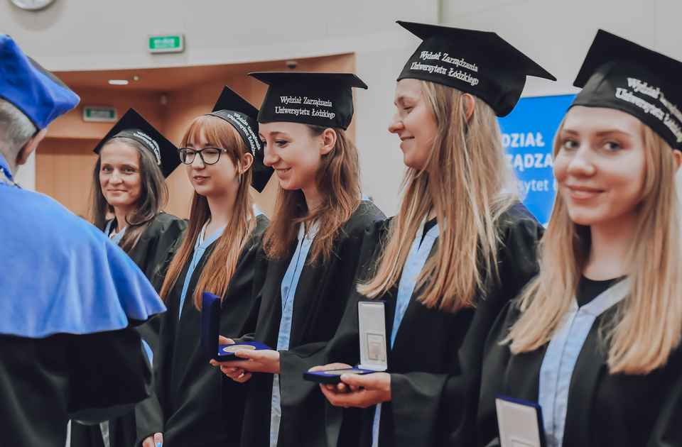W imieniu absolwentów głos zabrała mgr Aleksandra Rudnicka.Na koniec Gali Dziekan Wydziału Zarządzania UŁ osobiście wręczył dyplomy wszystkim obecnym na Gali absolwentom, podziękował za obecność wszystkim uczestnikom, w tym gościom reprezentującym partnerów biznesowych Wydziału Zarządzania, którzy ufundowali nagrody naszym absolwentom. Następnie uczestnicy wydarzenia udali się na patio, gdzie wspólnie wznieśli toast i wykonali podrzut biretem uwieczniony na zdjęciach.