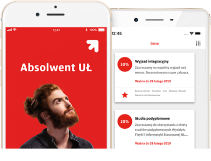 4. Aplikacja ABSOLWENT UŁ (Aplikacja) – aplikacja mobilna dostępna w AppStore i GooglePlay, pozwalająca na dołączenie do Klubu Absolwenta, zamówienie oraz korzystanie z Karty Absolwenta UŁ, przegląd aktualnych ofert i promocji Partnerów honorujących Kartę, a także odświeżenie znajomości i kontaktów z czasów studiów.