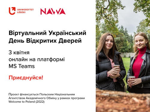 Dni Ukraińskie na UŁ są inicjatywą finansowaną w ramach projektu pt. „Wzmocnienie potencjału rekrutacyjnego Uniwersytetu Łódzkiego oraz rozwój marki UŁ na wybranych rynkach edukacyjnych” realizowanego przez Uniwersytet Łódzki i finansowanego przez Narodową Agencję Wymiany Akademickiej w ramach Programu Welcome to Poland (2022), na podstawie umowy PPI/WTP/2022/1/00025/U/00001.