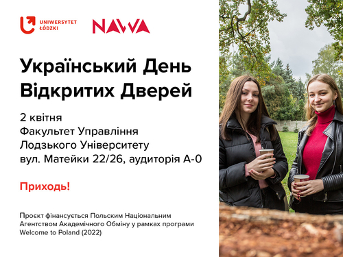 Serdecznie zapraszamy na Dni Otwarte dla uczniów z Ukrainy, które odbędą się 2 kwietnia 2025 roku na Wydziale Zarządzania Uniwersytetu Łódzkiego oraz 3 kwietnia 2025 roku w formie online na platformie MS Teams. Są to drugie dni otwarte skierowane do młodzieży ukraińskiej organizowane przez UniLodz. Ubiegłoroczne dni otwarte odwiedziło ponad 200 osób.