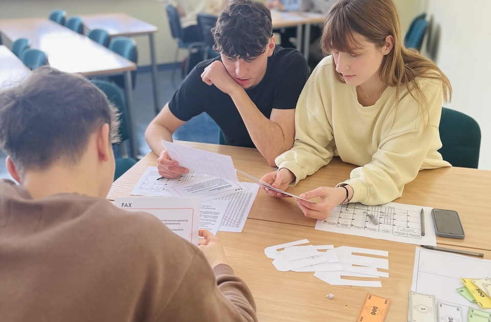 "Wraz z uczniami klasy I A uczestniczyłam na Wydziale Zarządzania na warsztatach ,,Homoresponsabilis - Gra biznesowa dotycząca przedsiębiorczości". Uczniowie bardzo pozytywnie ocenili te zajęcia. Dzięki grze zdobyli podstawowe informacje na temat funkcjonowania przedsiębiorstw. W trakcie gry musieli podejmować różne decyzje biznesowe, uczyli się prowadzenia negocjacji, a także współpracy w grupie. Serdecznie zachęcam innych do skorzystania z tej oferty".