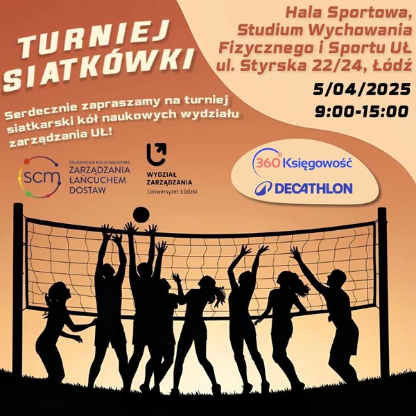 Serdecznie zapraszamy wszystkie koła naukowe naszego Wydziału do udziału w Turnieju Siatkówki, organizowanym przez Studenckie Koło Naukowe SCM
